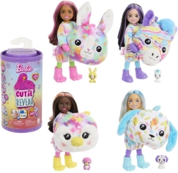 De Barbie Cutie Reveal Chelsea Kleurrijke Dromen poppen brengen kinderen plezier in het ontdekken en fantasierijk stylen. Het schattige pluchen kostuum (konijntje, zebra, pinguïn of dalmatiër) verandert na het onthullen in een oversized jasje voor de pop en de kostuumkap in een mandje voor het mini-diertje. Elke unboxing bevat tot wel 6 verrassingen en stimuleert de verbeelding en fijne motoriek.