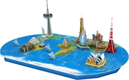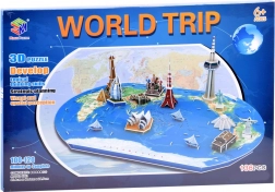 Op de kaart vind je wereldiconen zoals de Eiffeltoren, de Opera van Sydney en het Vrijheidsbeeld, en nog veel meer. Het afgewerkte model heeft afmetingen van ca. 65,4 × 40,6 × 24,7 cm en past perfect als decoratie in de kinderkamer of speelruimte.
