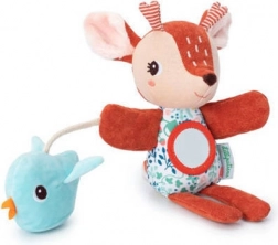 De handpop is ideaal voor samen lezen, vertellen en ontspannen voor het slapengaan. Het geïntegreerde spiegeltje, belletje/ramelaar en het knisperende vogeltje prikkelen op natuurlijke wijze zicht, gehoor en tast. Een geweldig cadeau voor baby’s vanaf 6 maanden.