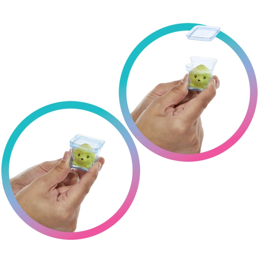 Pop, slijm, 2 herbruikbare “ijs”-blokjes, rok, schoenen, rietje, portemonnee, geurig pluchen diertje