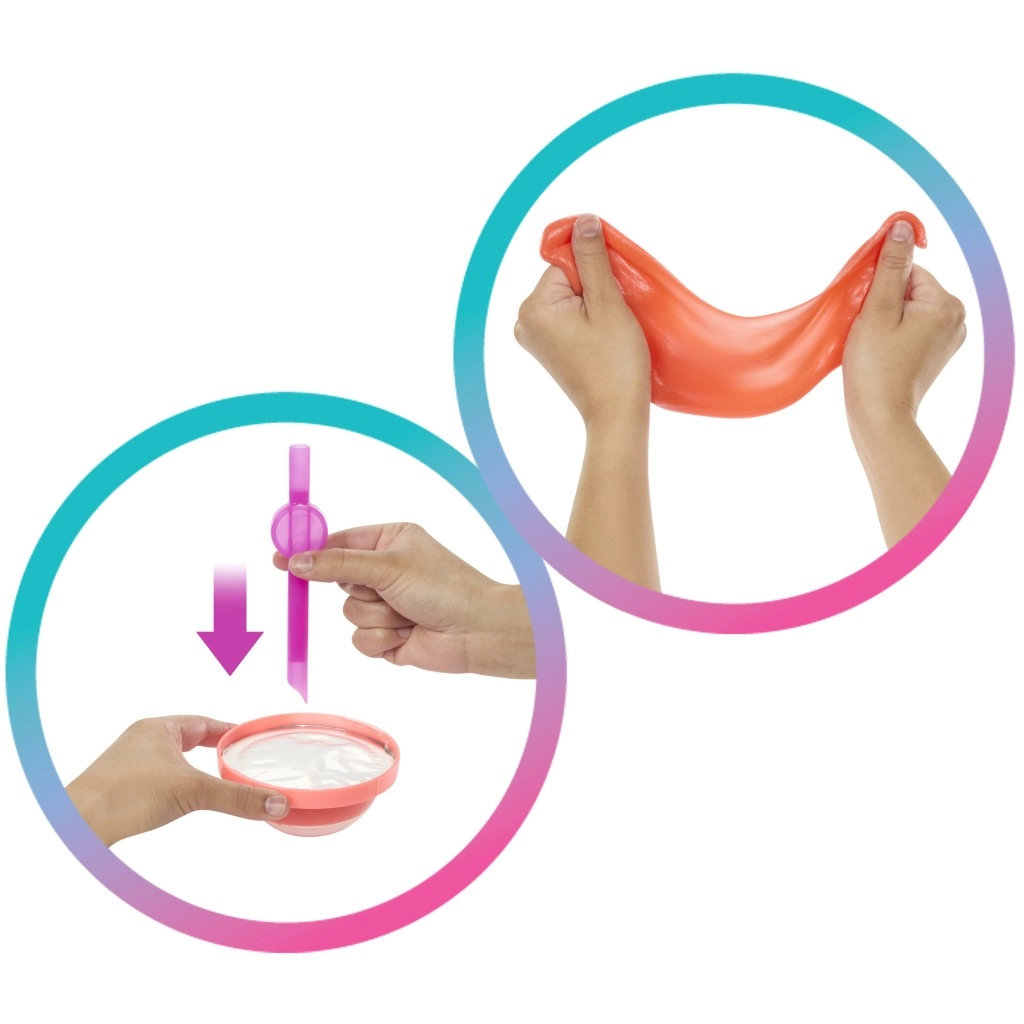 De Barbie Pop Reveal Bubble Tea poppen zorgen voor speels uitpakken stap voor stap: draai het deksel met de gekleurde slijm los, prik de folie door met het rietje en onthul de pop met een subtiele bubble-tea geur. Elke verpakking verbergt thematische elementen geïnspireerd op favoriete smaken – van melk-thee via fruitige verwennerij tot groene thee en mangocakejes.