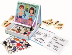 Het samenstellen van scènes met magnetische afbeeldingen ontwikkelt niet alleen de fijne motoriek en handigheid, maar prikkelt ook de fantasie. Door het vertellen van grappige verhaaltjes verbeteren kinderen hun uitdrukkingsvaardigheid en breiden ze hun woordenschat uit.