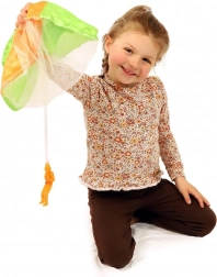 Gooi, kijk en vang! De lichtgevende parachutist met parachute zorgt voor eindeloos actieplezier en leert kinderen tegelijk de principes van dalen en zweven. Gooi hem gewoon omhoog – de parachute ontvouwt zich en vertraagt de val net als bij een echte parachutist. Dankzij het compacte figuurtje van 12 cm is het speelgoed geschikt voor de tuin, het park en binnen.