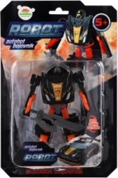 Deze transformerende robot in een elegante zwarte kleur biedt dubbel zoveel plezier – met één beweging verander je hem van een sportauto in een indrukwekkende robot. Dankzij de gewrichte ledematen neemt hij eenvoudig verschillende gevechts- en actieposes aan en prikkelt hij de fantasie.