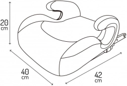 De gevoerde, ergonomisch gevormde armleuningen verhogen het comfort op zowel korte als lange ritten. De verhoger voldoet aan de strenge norm ECE R129/03 (i-Size) en is bedoeld voor kinderen met een lengte van 135–150 cm en een gewicht tot 36 kg.