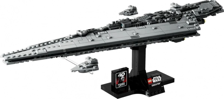 Bijgevoegd zijn ook twee kleinere Star Destroyers op transparante elementen, die op elegante wijze de monumentale schaal van het schip benadrukken. De display wordt aangevuld met een informatieplaquette en een speciale tegel voor het 40-jarig jubileum van STAR WARS: Return of the Jedi – een perfect stuk voor de collectie van elke fan.