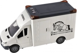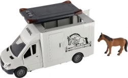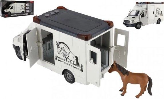 Stijlvolle witte dierentransporter met paardenfiguur voor kinderen vanaf 3 jaar. Uitgerust met licht- en geluidseffecten en heeft openende deuren voor een authentieke speelervaring.