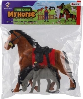 Speelgoed paard met zadel en veulen