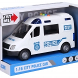 Deze politiewagen is uitgerust met licht- en geluidseffecten die je activeert met knoppen op de cabine. Kinderen beleven een realistisch spel dankzij de te openen voor- en achterdeuren. De auto wordt aangedreven door een vliegwiel, wat zorgt voor een vloeiende rit.
