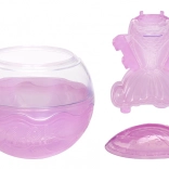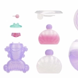 De doorzichtige bol/het “aquarium” verandert na het uitpakken in een standaard en vitrine, zodat je de pop mooi kunt uitstallen en veilig kunt opbergen. In de verpakking vind je ook thematische accessoires (bijv. bril, schelpen of een flesje) die de verbeelding prikkelen en het verzamelen stimuleren.