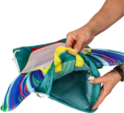 Stijlvolle zak met zee‑thema helpt je zwemuitrusting comfortabel mee te nemen – van staart/monovin tot badkleding en handdoek. Ademend mesh zorgt voor snel drogen na gebruik, waardoor de inhoud niet lang vochtig blijft.
