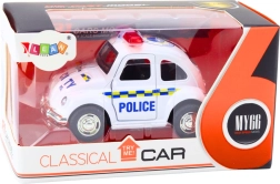 Deze klassieke politiewagen is uitgerust met wrijvingsaandrijving, waardoor hij na het op snelheid brengen vooruit rijdt en realistische scènes van politieachtervolgingen of patrouilles mogelijk maakt. De te openen portieren zorgen voor extra realisme tijdens het spelen.
