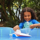 De grootste fun is het waterkanon met mechanische pomp, dat echt water spuit. Gewoon vullen en pompen – actie gegarandeerd! De boot is gemaakt van hoogwaardige kunststof, heeft heldere kleuren en een duurzame afwerking voor een lange levensduur. Bovendien kun je op de romp een kleine catamaran bevestigen (niet inbegrepen) om het speelscenario uit te breiden.