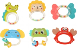 Deze kleurrijke set van 6 sensorische rammelaars en bijtringen is de ideale metgezel vanaf de eerste levensdagen. Elk speeltje valt op door een unieke vorm en kleur en dankzij de zachte randen dient het als een zachte bijtring tijdens het doorkomen van tandjes.
