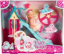 Betreed het feeënenrijk met Evi Love, die verandert in een magische fee met haar twee schattige eenhoorns. De speeltoren biedt een bewegende lift, een carrousel in de wolken voor beide eenhoorns, een glijbaan en een geheime bergplaats voor de stok. Evi kan aan de bovenste dwarsbalk worden vastgemaakt zodat ze met vlinders boven de toren kan “zweven”.