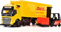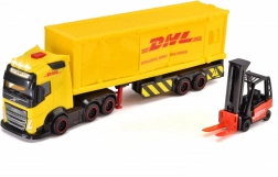 Dit gedetailleerde model van een VOLVO-vrachtwagen in DHL-kleuren biedt kinderen volop mogelijkheden voor creatief spel. Met de meegeleverde heftruck en dozen kun je eenvoudig het laden, vervoeren en lossen naspelen – precies zoals in de echte logistiek.