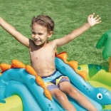 Dit opblaasbare badje met een origineel dinosaurusdesign zorgt voor veel plezier in de tuin. Kinderen zullen zich vermaken met glijden en spelen met de dinosaurusfiguren, terwijl de ingebouwde palmsproeier voor extra waterverfrissing zorgt.