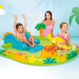 De unieke glijbaan in de vorm van een dinosaurusrug is het middelpunt van dit speelcentrum en ideaal voor waterpret.