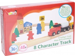 Ontdek de leuke houten treinbaan in een complete set van 48 stuks, die zowel kleine machinisten als ouders zal bekoren. Bevat houten rails, een treintje met magnetische wagonnetjes, figuurtjes, een auto, een gebouw en verkeersborden – alles om je eigen wereld op de rails te creëren.