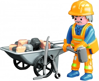 • Bevat een figuurtje van een bouwvakker, kruiwagen, lading en gereedschap