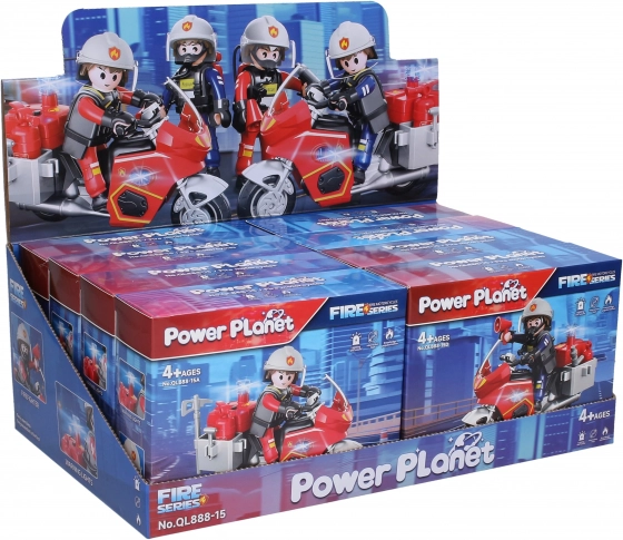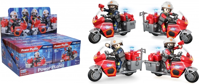 Ervaar de sensatie met dit bouwpakket van een brandweerman op een motor, dat lichteffecten en een knipperend zwaailicht biedt.