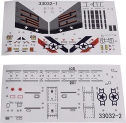 Stickervellen met decals en afneembare raketten completeren de uiteindelijke look van het model. Voeg markeringen en insignes toe die het toestel een realistisch, verzamelwaardig karakter geven.