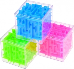 De draaiende 3D-labyrintkubus is een geweldige keuze tegen verveling voor kinderen en volwassenen. In het transparante en duurzame kunststof zitten talloze bochtige gangetjes waarin je met vaardige handbewegingen de metalen kogel van start naar finish leidt. Het spel heeft geen vast einde – de kogel die door het ene gat binnenkomt, komt door een ander naar buiten, waardoor het plezier nooit ophoudt.
