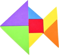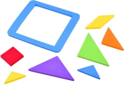 Deze klassieke tangram in een modern foam jasje biedt uren slimme speelpret. Met acht onderdelen inclusief frame kun je tientallen silhouetten en afbeeldingen leggen – volgens voorbeelden of je eigen creativiteit. Het zachte materiaal voelt prettig aan en is veilig voor kinderen.