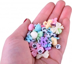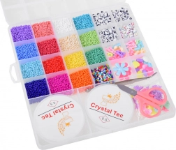 In de verpakking zitten ook de nodige hulpmiddelen – 2 rollen rijgsnoer, pincet en schaar, zodat je meteen kunt beginnen. Dankzij 16 kleuren kleine kralen en letter- en decoratieve vormen maak je gemakkelijk gepersonaliseerde accessoires met namen, initialen of favoriete motieven.