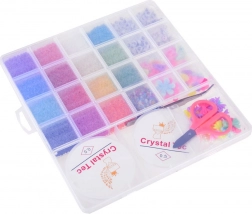 Het transparante doosje houdt alle kralen overzichtelijk gesorteerd, zodat je tijdens het knutselen altijd de juiste tint en vorm bij de hand hebt.