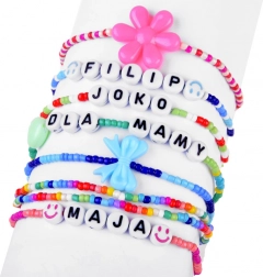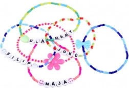 Maak armbanden en kettingen met namen, initialen of boodschappen dankzij de letterkralen en kleurrijke accenten.