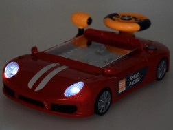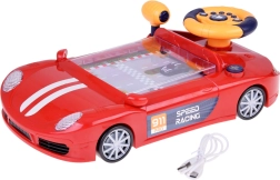 Ontdek een nieuwe dimensie van kinderspel met het raceautootje dat een kleurrijk racecircuit verbergt. Kinderen starten de race met een druk op de knop, beginnen te rijden met de hendel en besturen het kleine blauwe autootje in het spel met het stuur. Tijdens het rijden klinken vrolijke melodieën, gaan de koplampen branden en zijn er realistische geluiden van motor, claxon en achteruitrijden.