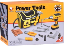 De set bevat een hamer, sleutels, schroevendraaier, schroeven, moeren en bouwonderdelen – ideaal om fijne motoriek te oefenen en creatief te bouwen.