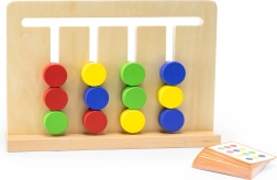 Deze slimme en duurzame set ontwikkelt logisch denken, fijne motoriek en concentratie. Kinderen plaatsen de blokjes op de juiste posities en reproduceren de kaarten met afzonderlijke opdrachten – eerst volgens kleuren, later volgens geometrische vormen. Het spel leidt vanzelf tot het plannen van bewegingsvolgordes en traint geduld.
