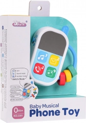 Interactieve telefoon voor kinderen vanaf 6 maanden. Gemaakt van de beste materialen in vrolijke kleuren, veilig voor de kleintjes zonder scherpe randen. De telefoon wordt gevoed door 3 x AAA 1,5 V batterijen (niet inbegrepen).