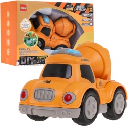 We presenteren een interactieve bouwtruck die niet alleen een natuurgetrouwe miniatuur is van een vrachtwagen met mixer, maar ook het perfecte speelgoed om de vaardigheden van je kind te ontwikkelen. Kinderen zullen genieten van realistische geluiden zoals het werkgeluid van de mixer, vrolijke melodieën en kindergelach, vergezeld door knipperende lampjes op het dak.
