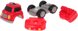 Interactieve brandweerauto met magneten voor kinderen vanaf 3 jaar. De auto is gemaakt van de hoogste kwaliteit kunststof en heeft geluid- en lichteffecten. Door op het bovenste deel van het voertuig te drukken hoor je vrolijke liedjes, brandweersirenes of kindergelach. De geluidseffecten worden vergezeld door gekleurde lampjes op het dak van het voertuig. Het voertuig kan zonder gereedschap uit elkaar worden gehaald. De afzonderlijke onderdelen zijn voorzien van magneten, zodat ze gemakkelijk en stevig aan elkaar kunnen worden bevestigd. Het speelgoed werkt op 3 x AG13-batterijen (meegeleverd).
