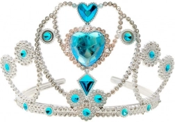 • Kroon: Prachtig versierde zilverkleurige kroon met blauwe kunststof steentjes die een sprookjesachtige glans geven.
