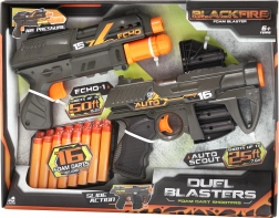 Beleef adrenalinevolle duels met dit duo schuimdartpistolen van BLACKFIRE. Het model Auto Scout biedt snelvuur dankzij het magazijn voor 6 darts en het eenvoudige spannen van de loop voor elk schot. Echo‑1 valt op door het pompmechanisme waarbij je de dart rechtstreeks in de loop plaatst en een groter bereik tot 15,2 m hebt.