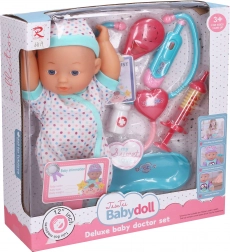 Deze interactieve set is ideaal voor kinderen die graag doktertje spelen. De 30 cm grote baby wordt geleverd met een licht- en geluidsstethoscoop die realistisch medisch gereedschap nabootst. Bovendien bevat het andere belangrijke medische instrumenten zoals een thermometer, injectiespuit, flesje, naamkaartje en patiëntenkaart.