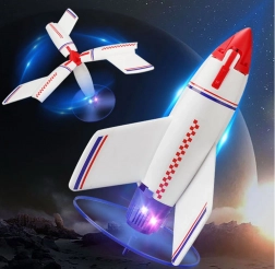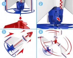 Deze lichte en duurzame raket combineert een kunststof frame met zacht schuim voor veiliger gebruik. Tijdens het dalen openen de vleugels automatisch en werken ze als een parachute, wat zorgt voor een stabiele en zachte landing. Starten is eenvoudig – plaats de raket op het lanceerplatform en activeer hem met de knop of de afstandsbediening.