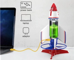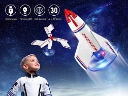 Ontdek het plezier met deze vliegende raket die tot een hoogte van ongeveer 30 meter opstijgt en vervolgens dankzij uitklappende vleugels automatisch landt. Inclusief lanceerplatform, afstandsbediening, ingebouwde accu en USB-kabel voor het opladen – ideaal voor buitenavonturen van kleine astronauten.