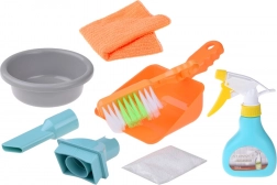 Handveger, blik, plantenspuit, doekje, bakje en een zakje met bolletjes – alles wat een kleine helper nodig heeft voor gevarieerd schoonmaakspeelgoed.