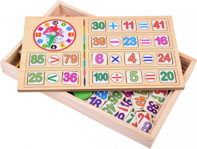 Deze multifunctionele set ondersteunt het natuurlijke leren van kleuters en jonge schoolkinderen. De houten constructie zorgt voor duurzaamheid en een prettig tactiel gevoel, terwijl de levendige kleuren motiveren om cijfers, vormen en eenvoudige sommen te ontdekken. Dankzij de afsluitbare box houdt u alles overzichtelijk bij elkaar – ideaal voor thuis en onderweg.