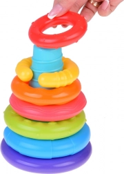 Elke ring heeft een ander oppervlak en een andere kleur, wat de tastzin, visuele aandacht en nieuwsgierigheid van het kind stimuleert.
