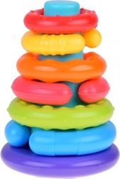 Deze sensorische stapeltoren combineert levendige kleuren en diverse oppervlakken voor stimulerend spel vanaf jonge leeftijd. Kinderen leren groottes, kleuren en volgorde onderscheiden, terwijl ze tegelijkertijd hun coördinatie en greep oefenen.