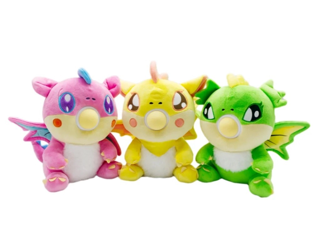 De Popiki Dragons-collectie omvat drie unieke pluchen draken in verschillende kleuren: geel, roze en groen. Elke draak heeft zijn unieke eigenschappen en persoonlijkheid, wat het spel nog leuker maakt. Door op de juiste plek te drukken, maakt de draak een grappig “pop”-geluid en schiet hij een balletje af, waarmee hij de verbeelding en coördinatie van kinderen ontwikkelt.