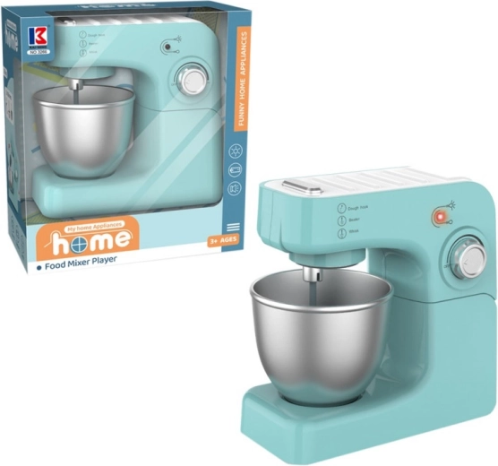 De kleine chef kan het mengproces zelfstandig controleren door op de zilveren knop aan de bovenkant van het speelgoed te drukken.