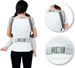 Het brede, verstelbare paneel houdt de rug van de baby in de juiste bolling en zorgt voor de ergonomische M-positie van de beentjes voor een veilige heupontwikkeling.