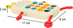 Dankzij de afgeronde randen en duurzame afwerking is het speeltje ideaal voor dagelijks spel, thuis en onderweg. Gekleurde knoppen met cijfers motiveren tot cijferherkenning en stimuleren de eerste kennis. Het compacte formaat past perfect in kleine kinderhandjes.